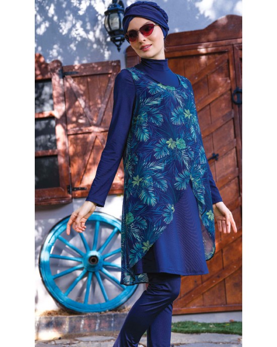 21100 K.Lacivert Likralı Pareolu Tesettür Mayo Takımı nurkonicgiyim