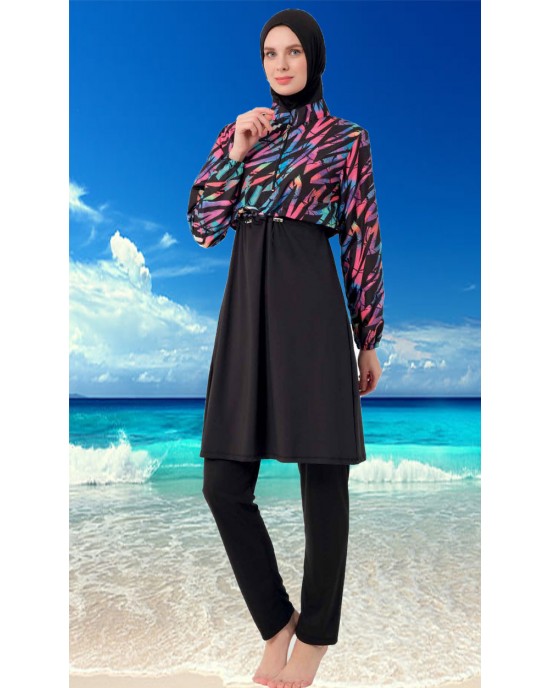 21109 Siyah Dokuma Likralı Tesettür Mayo Takımı nurkonicgiyim