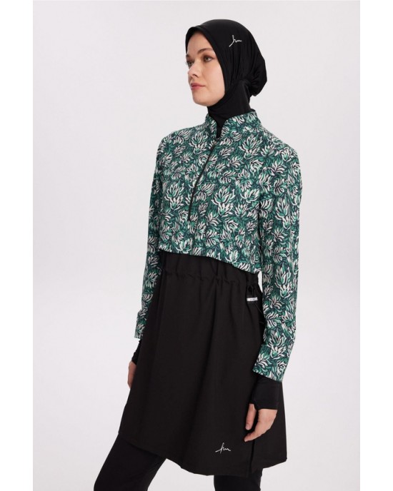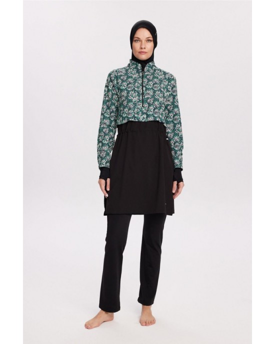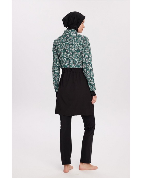 2934 Esila Yeşil Çiçek 5 Parça Tam Tesettür Mayo Takımı nurkonicgiyim