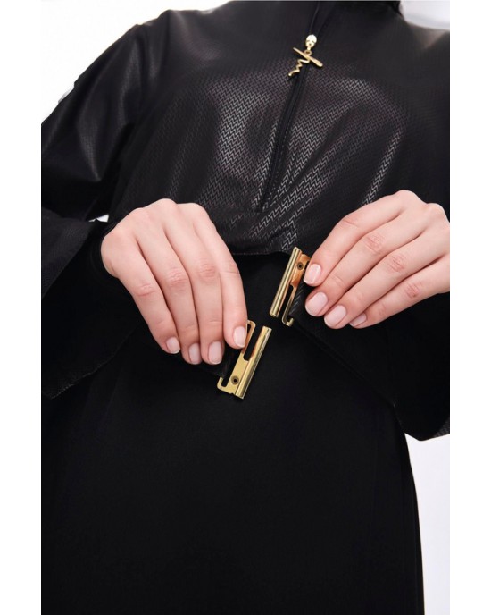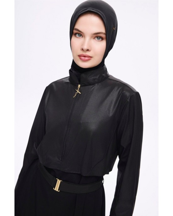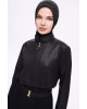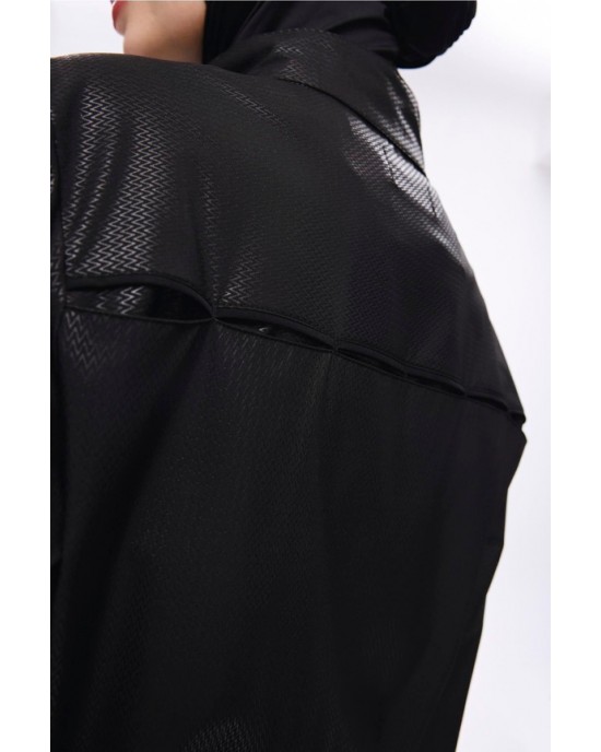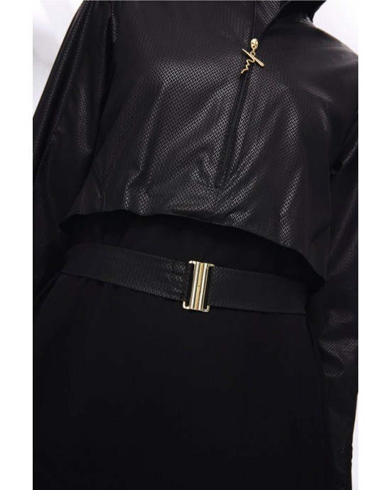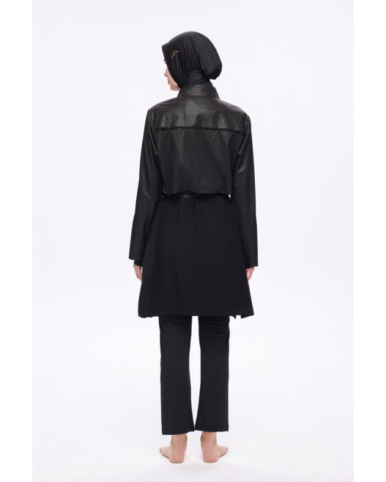 5027 Siyah Kemer Toka Detaylı Dokulu Kumaş Tesettür Mayo Takımı nurkonicgiyim