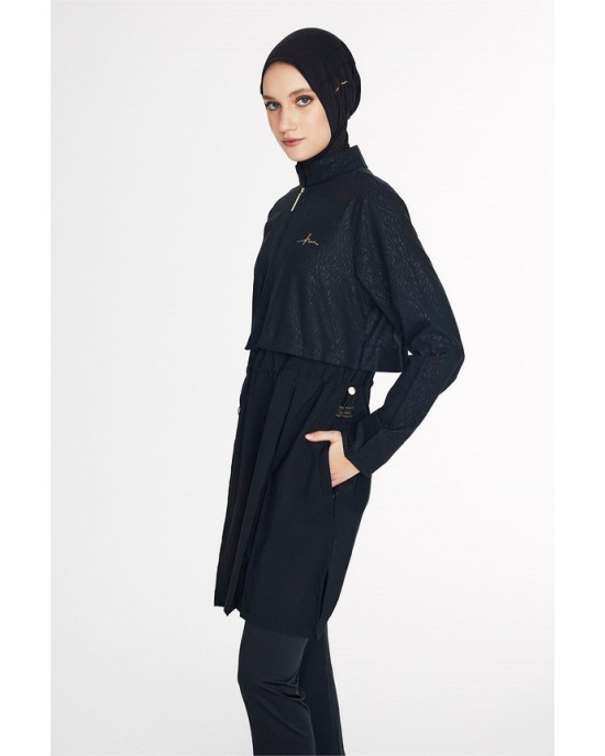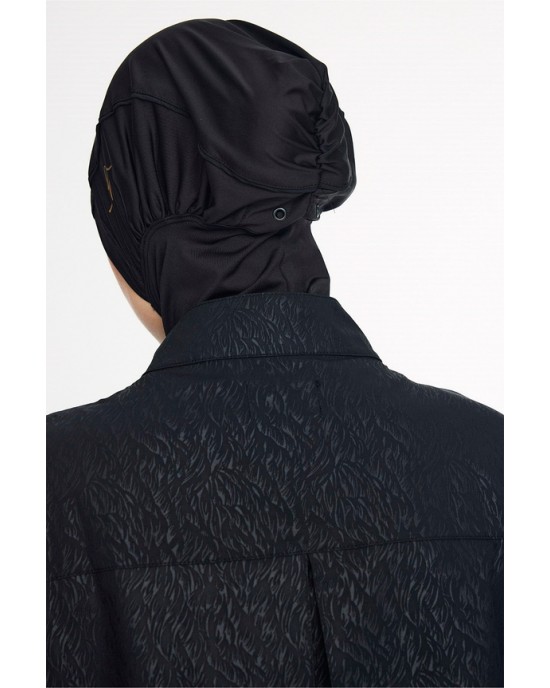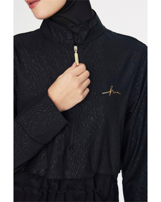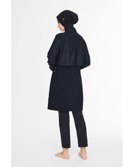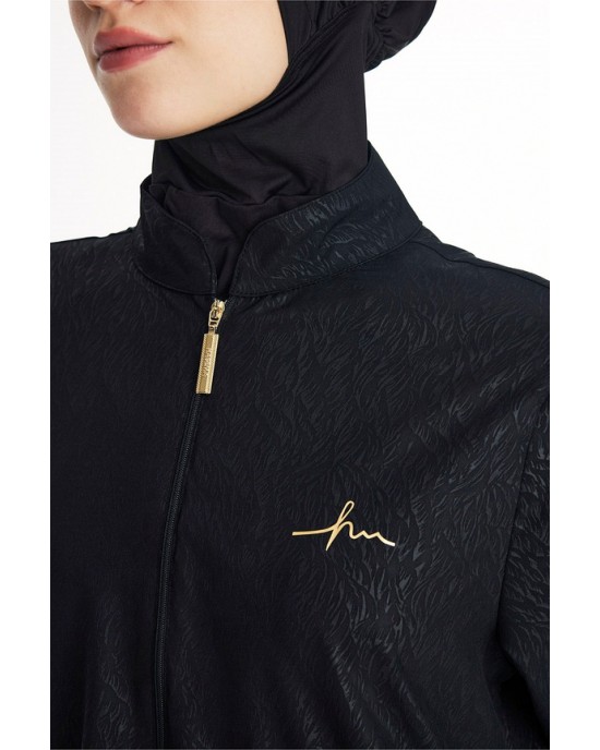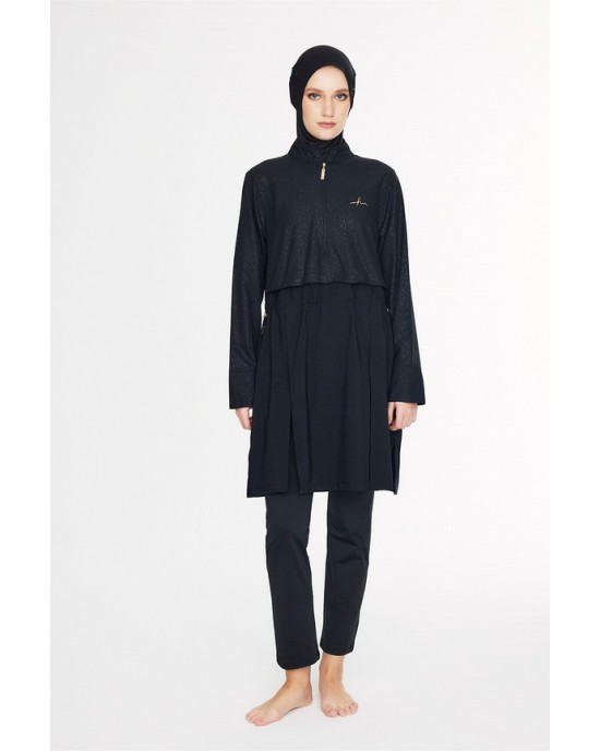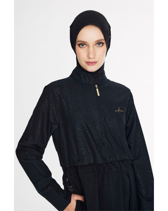 5081 Siyah Vaha Dokulu Kumaş 5 Parça Tesettür mayo nurkonicgiyim
