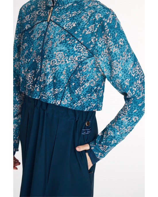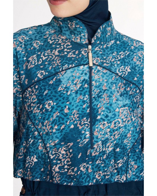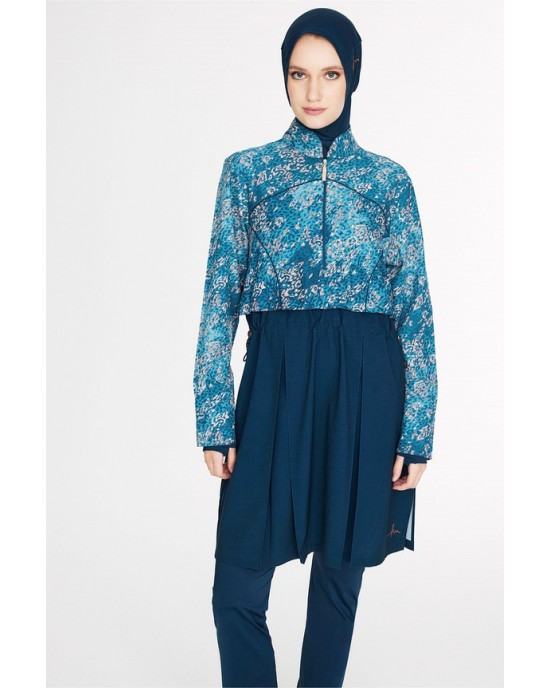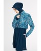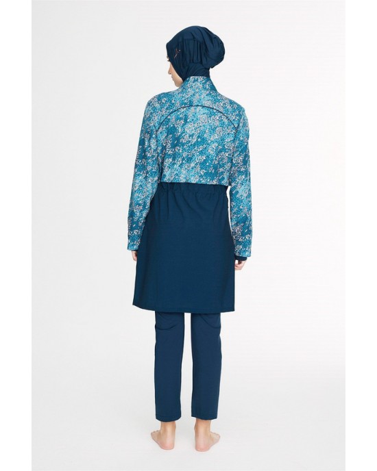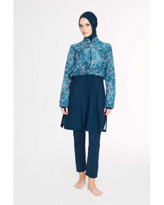 5088 Lacivert Vaha Desenli 5 parça Tesettür Mayo nurkonicgiyim