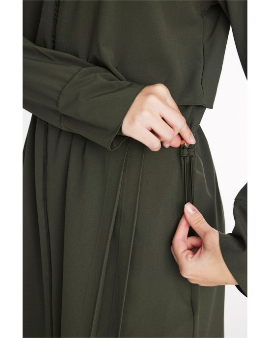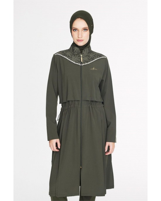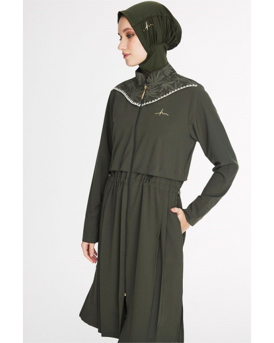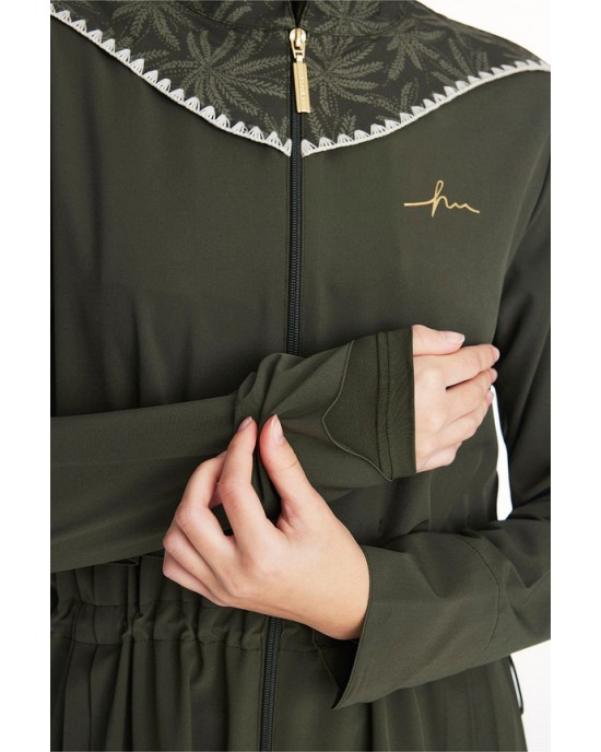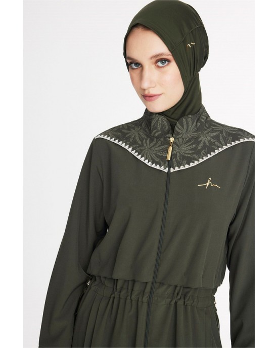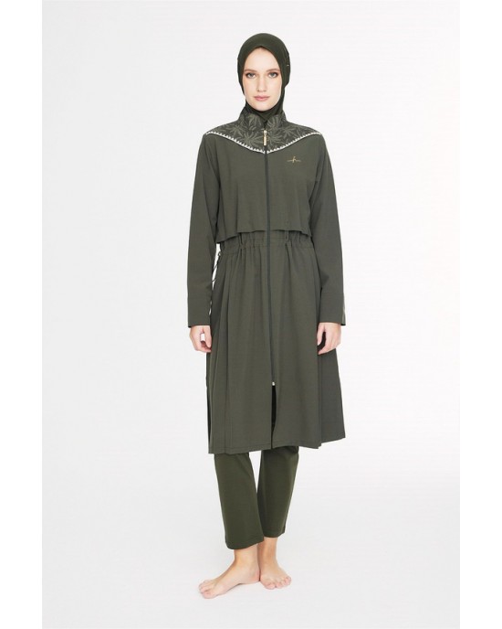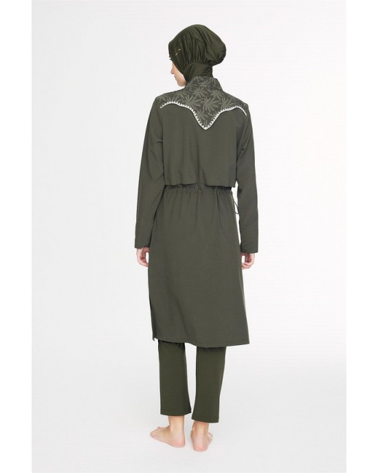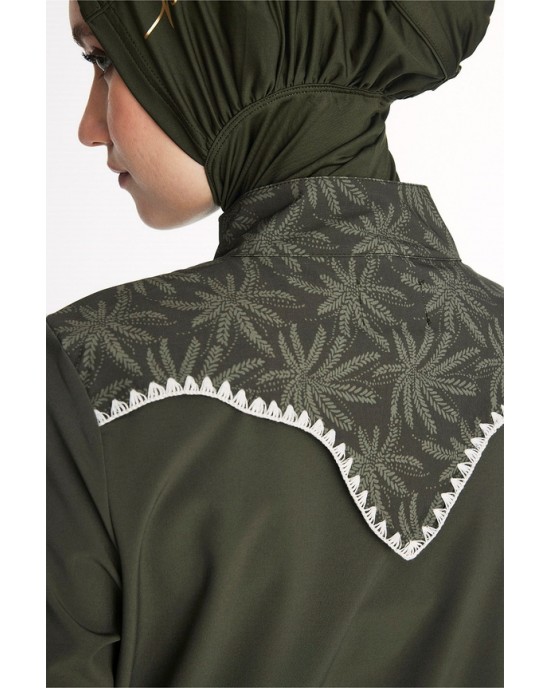 5097 Haki Vaha Omuz Bölgesi Palmiye Desenli 5 parça Tesettür Mayo nurkonicgiyim