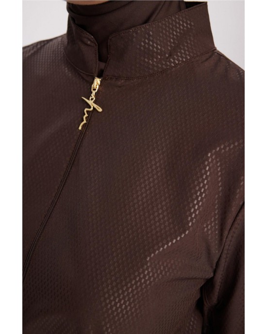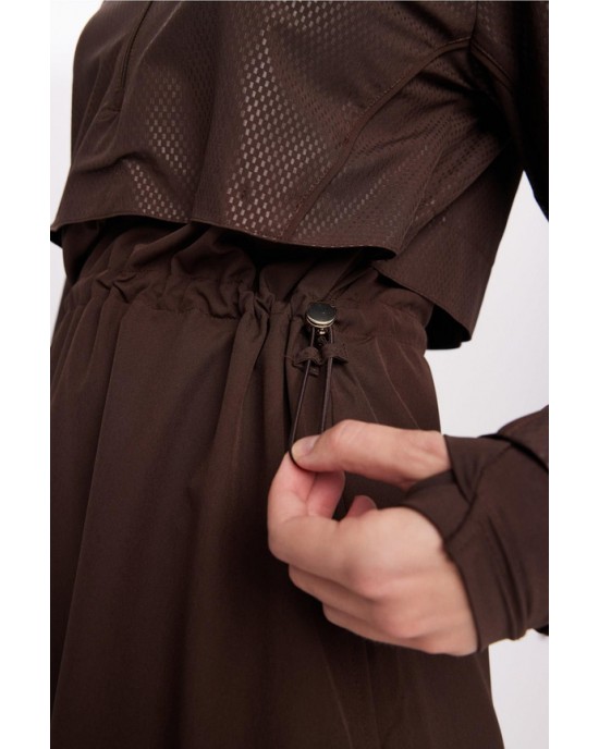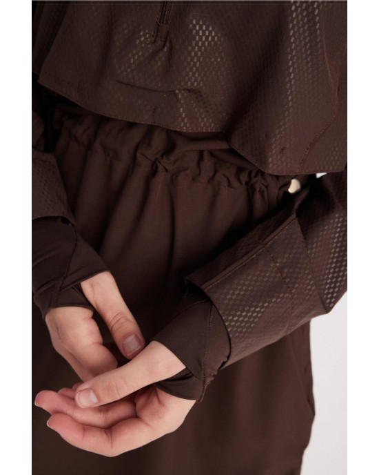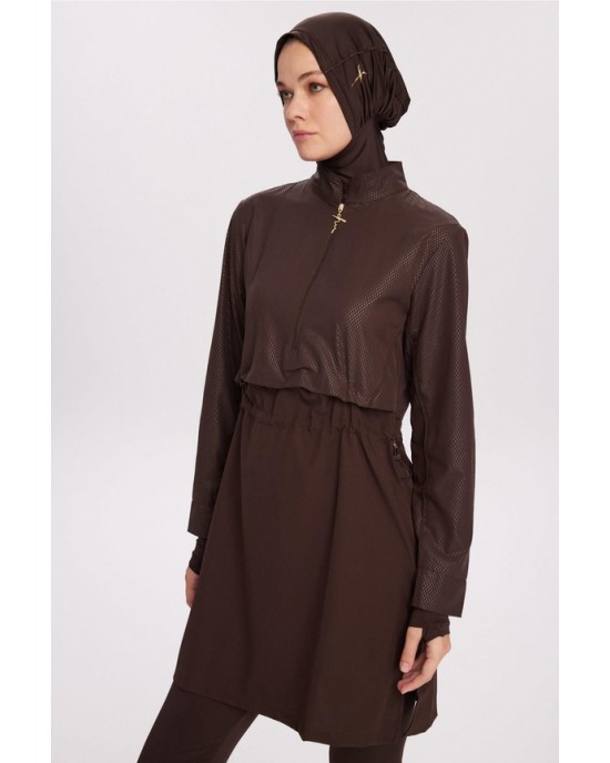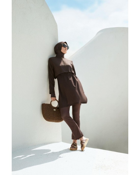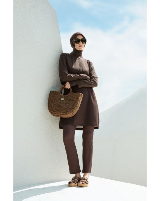 5067 Esila Dokulu Kumaş Kahverengi Tesettür Mayo Takımı nurkonicgiyim